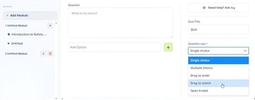 You can switch between single choice, multiple choice, drag to match, drag to order, and open-ended questions, all within one seamless experience.